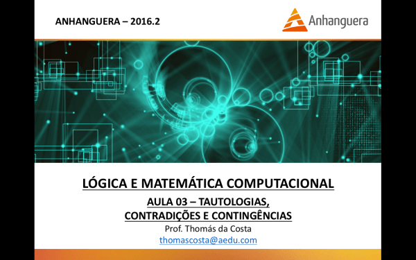Lógica e Matemática Computacional – Aula 03 – Tautologias, Contradições e Contingências